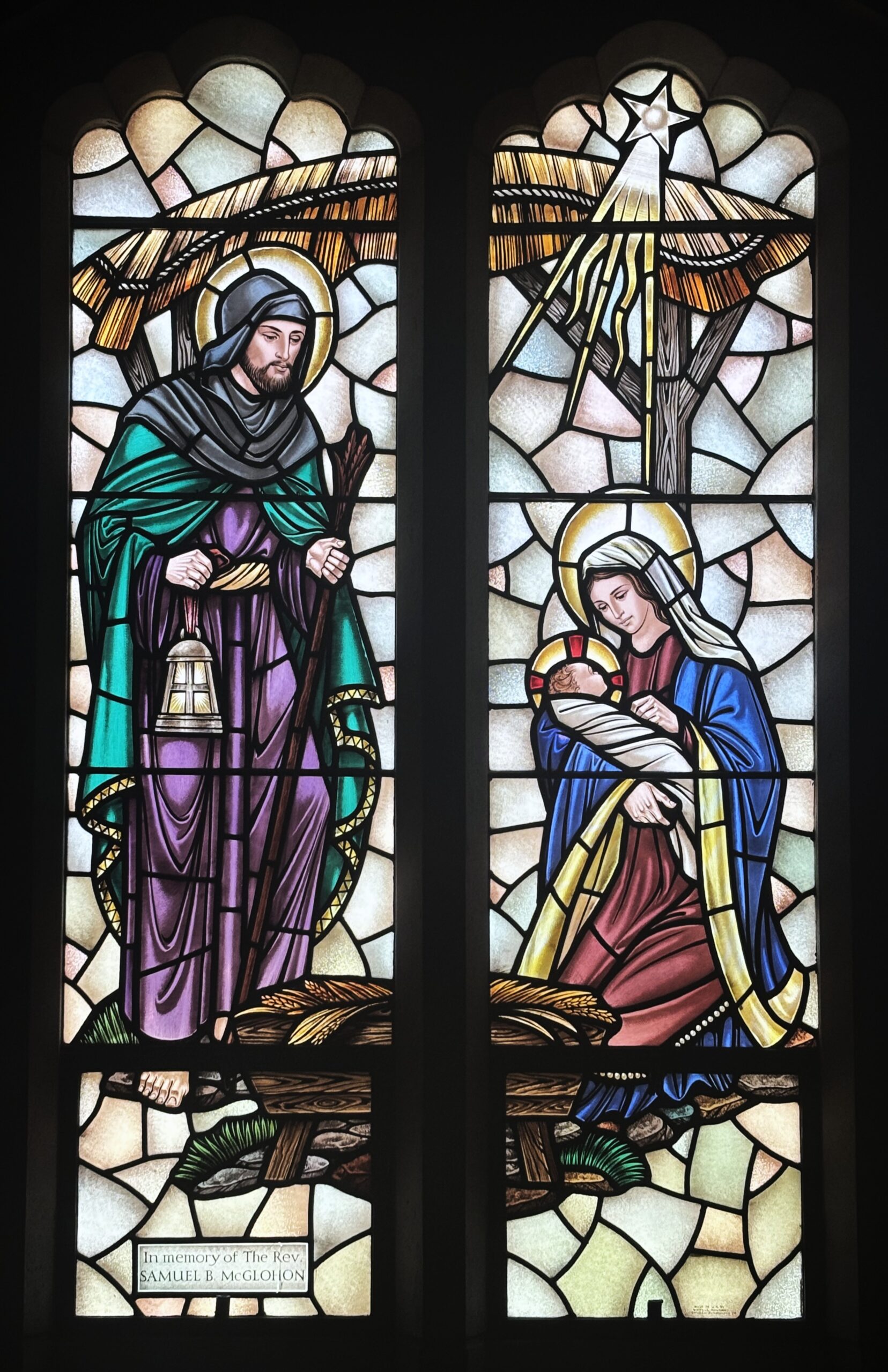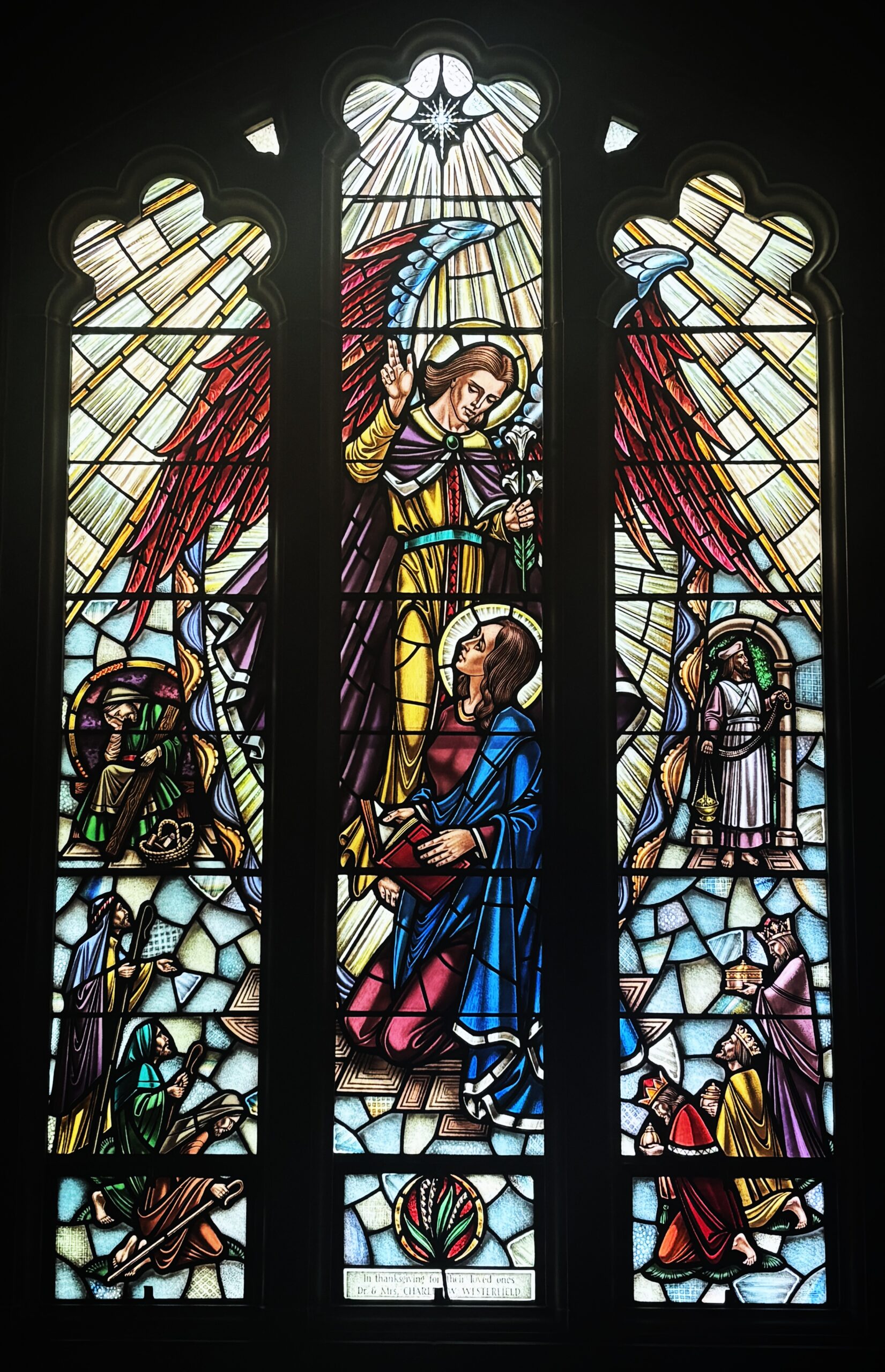 En la última ventana del muro sur de la nave aparecen imágenes del Nuevo Testamento. Se muestra la Anunciación, con el ángel que se aparece a la Virgen María para anunciarle que ha sido elegida por Dios para dar a luz a su Hijo. Esta lección se encuentra en el primer capítulo de Lucas. El ángel sostiene un lirio, símbolo de pureza, y María sostiene un libro abierto, símbolo de la Ley y de su sumisión a Dios, "según tu palabra". Todas las escenas más pequeñas simbolizan otras experiencias del Ángel de la Anunciación, que vino a José en sueños para decirle que el hijo de María era el Hijo de Dios, se apareció a Zacarías para predecir el nacimiento de Juan el Bautista, y que también vino a los pastores y a los reyes para anunciarles el nacimiento de Jesús.