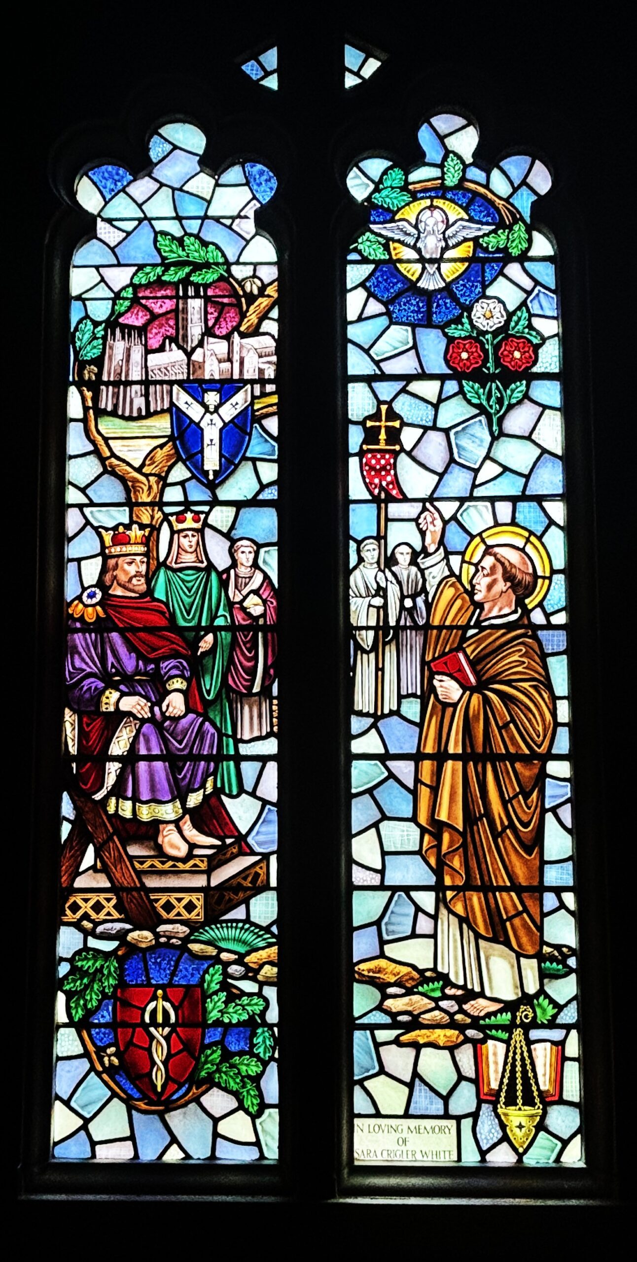 En el transepto norte hay dos ventanas que simbolizan la vida de la Iglesia en el mundo. La primera, en el muro oeste del transepto norte, es específica de la vida de la Iglesia inglesa y representa la conversión de Ethelbert, rey de Kent, y su esposa Bertha, por San Agustín de Canterbury. San Agustín llegó a Inglaterra en 597, convirtió y bautizó al rey Ethelbert y a su corte, y se convirtió en el primer arzobispo de Canterbury. Entre los símbolos de la ventana figuran la catedral y el sello de la sede de Canterbury, la paloma del Espíritu Santo, un escudo con un caduceo y una biblia abierta, símbolo de la oración y la Palabra de Dios.