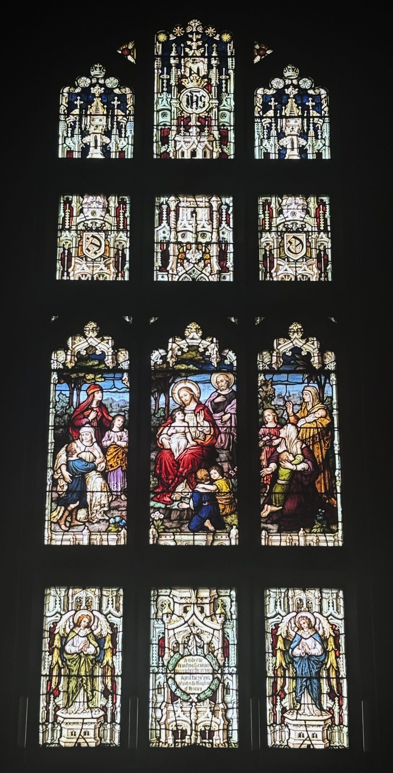 La gran ventana occidental representa a Jesús llamando a los niños hacia él. Es la única ventana de la iglesia que data de la construcción original del edificio. Fue realizada en 1907 por el estudio Franz Mayer de Múnich y donada por la familia Grainger en memoria de su hijo pequeño.
