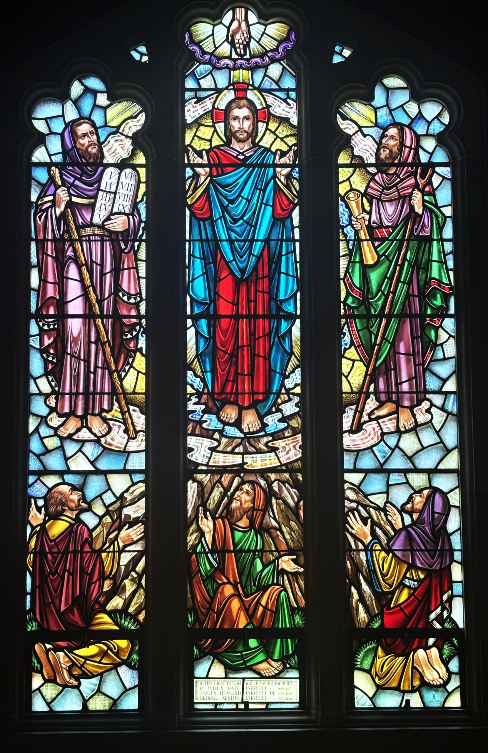 En la pared norte de la nave hay ventanas que simbolizan la transfiguración y la alimentación de la multitud. En la ventana de la transfiguración, Jesús aparece con Moisés y Elías, que simbolizan la ley y los profetas. Sus vestiduras se volvieron más blancas que la nieve y su rostro se transfiguró de gloria. De nuevo, este incidente aparece en los tres Evangelios sinópticos. Debajo de Jesús, Moisés y Elías están los apóstoles Pedro, Santiago y Juan. En la parte superior de la ventana hay una representación de la Mano de Dios, que simboliza la Voz de Dios que dijo: "Este es mi Hijo, mi Elegido, escuchadle".